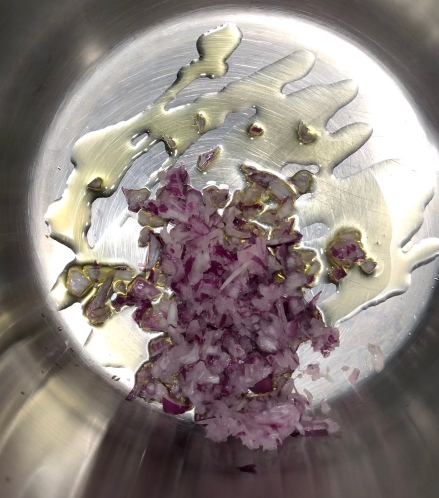 1 Zwiebel (ich nehme gerne eine rote)