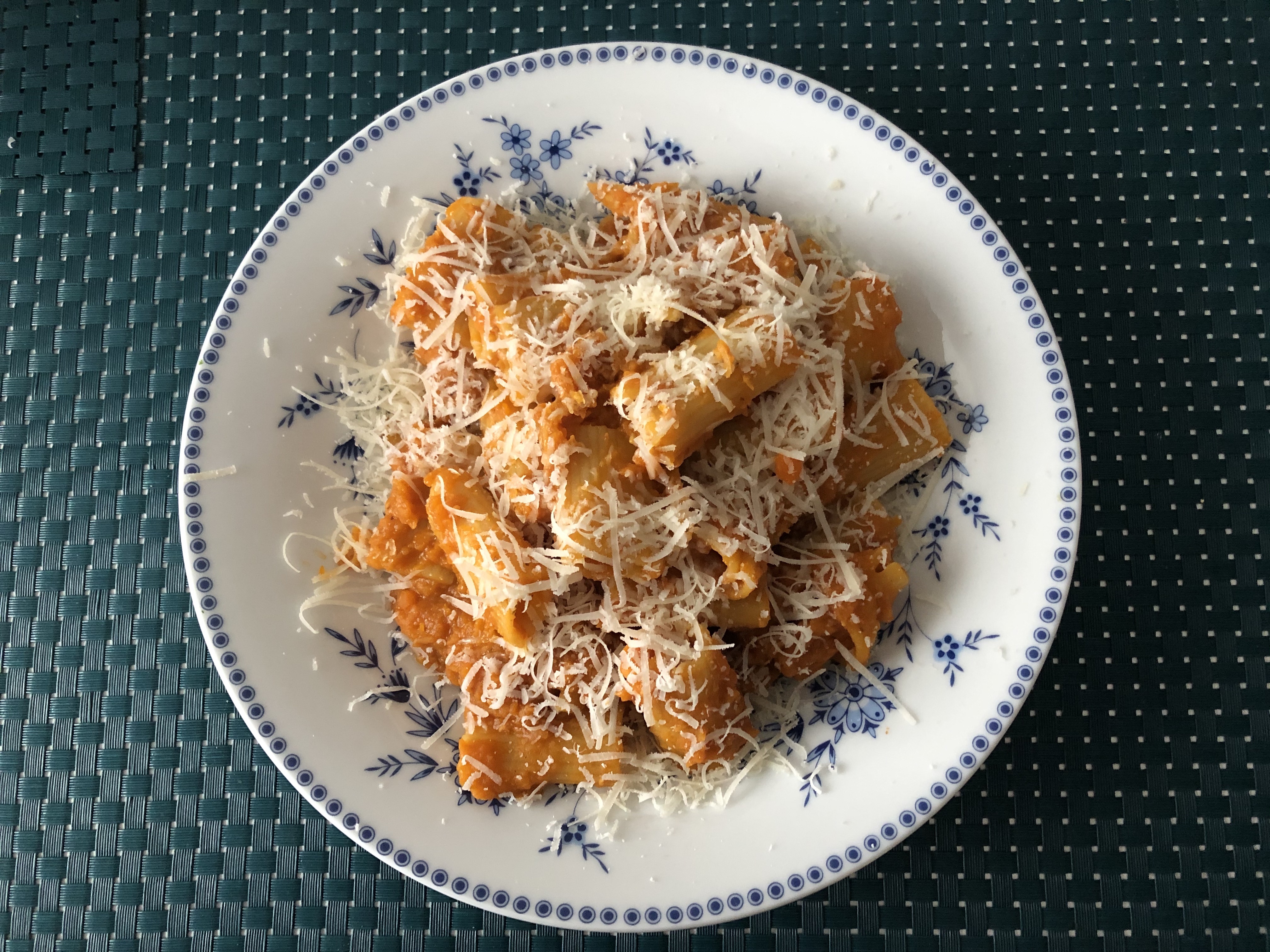 - Dann nur noch die Pasta kochen (wir nehmen gerne Penne Rigate oder noch lieber mezze maniche rigate) und sobald die Pasta al dente ist, die Pasta mit der Soße im Topf mischen. Bloß nicht einen Klecks Soße auf die Pasta geben und dann servieren. Denn jedesmal, wenn ihr das tut, heult eine italienische Nonna ihr Stofftaschentuch voll. Pasta gehört mit der Soße vermischt – vor dem Servieren. „Cosi si sposano!“ [So heiraten die beiden] Und wer möchte den Nudeln schon die Ehe mit der Sauce verweigern.