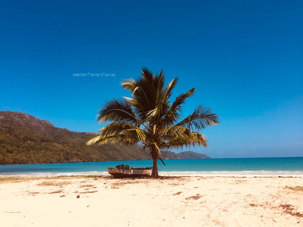 Wir breiten unsere Handtücher aus. Nach 20 Minuten kam aus dem Nichts ein Auto mit großer Ladefläche. Zwei Insulaner sprangen heraus mit Macheten. „Guido (mein Spitzname für ihn), jetzt bringen die uns um!“ flüsterte ich mit großen Augen. „Ach, woher! Ingrid, wir sind doch nicht im wilden Westen.“ antwortete er gelassen und lächelt die Macheten-Jungs freundlich an. „Wart doch mal ab, was die uns zu bieten haben!“ ergänzte er. „Einzelgrab oder Doppelgrab…“ gab ich ihm als Antwort und zog mir meine Tunika über. Wenigstens wollte ich nicht im Bikini sterben. Sie schrien etwas auf spanisch. Der Eine antworte: „Si, dos por favor! [Ja, zwei bitte!]“ Ich guckte den Einen an und sprach: „Wir können uns auch ein Grab teilen. Wir brauchen keine zwei.“ Er lachte laut und schallend. „Kokosnüsse! Die bieten uns Kokosnüsse an. Sie holen die Nüsse jetzt von der Palme da hinten.“ Ich zog mir schnell noch die Hotpants an. „Wind.“ murmelte ich auf den verwunderten Blick des Einen. Doch wir wussten beide, dass ich den Macheten-Männern nicht traute und am Ende nicht nur im smaragdgrünen Bikini begraben sein wollte. Die Männer brachten die Kokosnüsse zu uns. Der Eine bezahlte und hielt mir eine vor’s Gesicht. „Was es nicht alles gibt…verrückt.“ murmelte ich und trank das Kokosnusswasser.