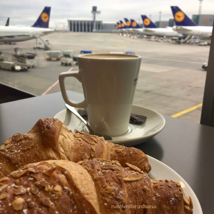 In etwa so sah unser Frühstück aus. Im Hintergrund müssen sie sich ein, wie irre durch das Terminal laufendes Kind vorstellen.