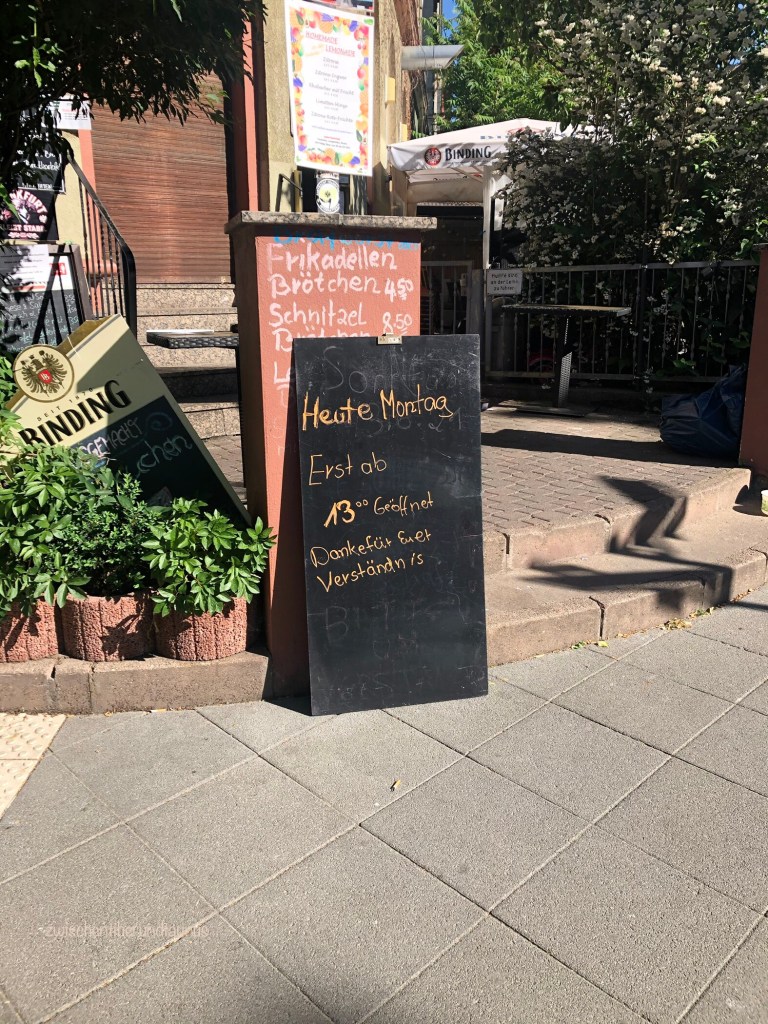 Ich habe allergrößtes Verständnis, am Montag erst um 13:00 Uhr zu öffnen. Das Wochenende war lang und sonnig und wenn ich die Wahl gehabt hätte, wäre ich an dem Schild nicht schon um 8:45 Uhr vorbei geschlürft, sondern erst gemütlich gegen 13:00 Uhr.