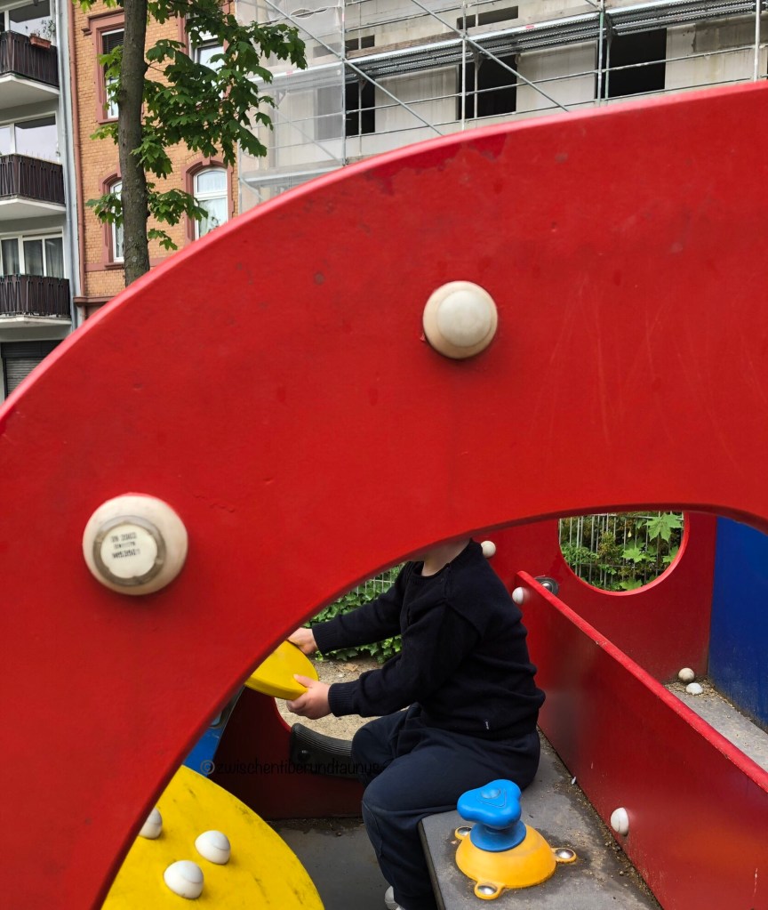 14:00 Uhr In den Wald oder nicht? Das Kind ist müde und quengelig. Wir entscheiden uns dagegen, da er auf der Rückfahrt sicher einschlafen würde und wir auf einen frühen Feierabend hoffen. Der Römer wegen seines Doktorat-Projekts und ich, weil ich am Mittwoch zur Prüfung antreten will. Wir gehen Richtung Stammspielplatz, biegen aber kurz vorher ab, da der kleine Spielplatz komplett leer gefegt ist. Viel Rutschen, Wippen, Feuerwehrauto fahren und Tauben jagen steht auf dem Programm.