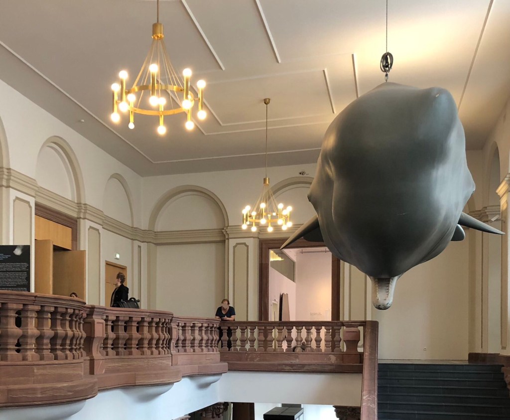 Als wir die Treppe in die erste Etage hochgehen, schwebt ein Wal über dem Treppenaufgang. “Ein Omurawal!”, bemerkt das Kind aufgeregt und wir müssen ziemlich lange bei dem Wal stehen bleiben.
