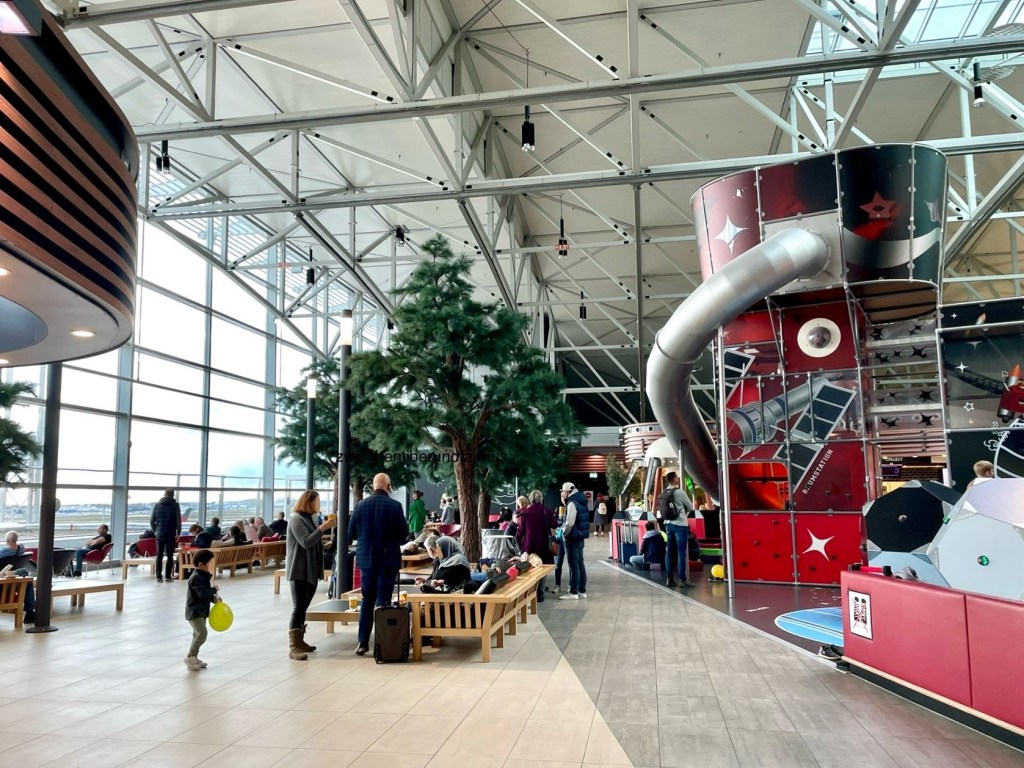 Sollten die Kinder schon etwas größer sein und es erlauben, dass die Eltern außerhalb ihres Sichtfeldes sind, können sich Eltern auch auf den sofaähnlichen Ruhebänken mit Blick aufs Vorfeld entspannen. Diese grenzen an den Indoor-Spielplatz an, aber man findet auch ein ruhiges Plätzchen, wenn man möchte.
