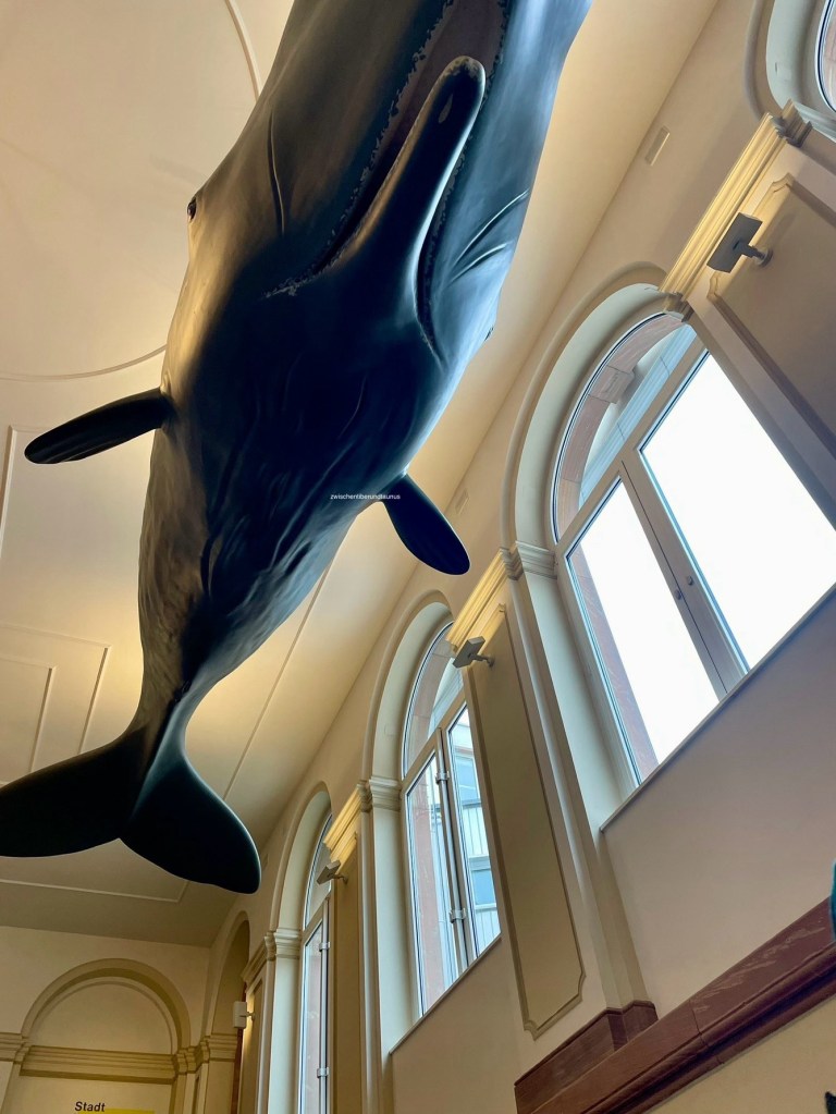 Der Pottwal im Treppenhaus des Senckenberg Museums. Zumindest vermute ich, es ist ein Pottwal. Signorino weiß ganz bestimmt, wie der Wal heißt.