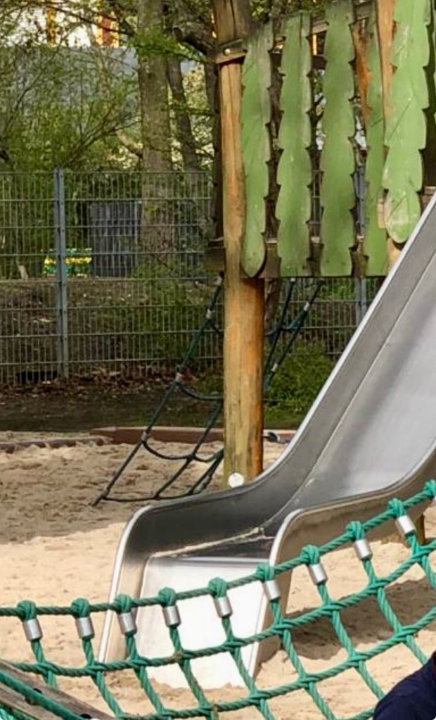 Römer: “Und jetzt kletterst du hier am Kletternetz auf den Rutschenturm! Dai! Forza! [Komm schon! Auf geht‘s!]”