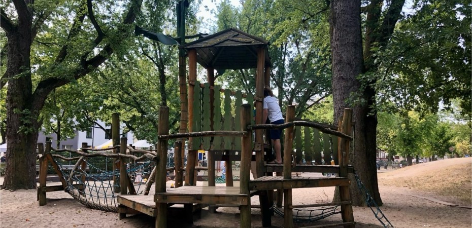 Der Römer und Signorino sind auf dem Spielplatz. Erstgenannter will den Filius stets zu allerhand Herausforderungen animieren.