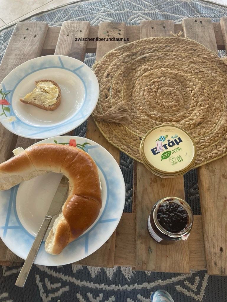 10:30 Uhr Wir frühstücken auf der Veranda. Anders als sonst in diesem Urlaub gibt es Kekse und keine “Kipferl” (wie sie in der hiesigen Bäckerei heißen) mit Marmelade. Wo ich doch gestern noch reçel, also Marmelade, mit Himbeeren gekauft habe. Hach! Irgendwie ist heute der Wurm drin. Ja, ja, auf hohem Niveau ist der Wurm drin – keine Frage.