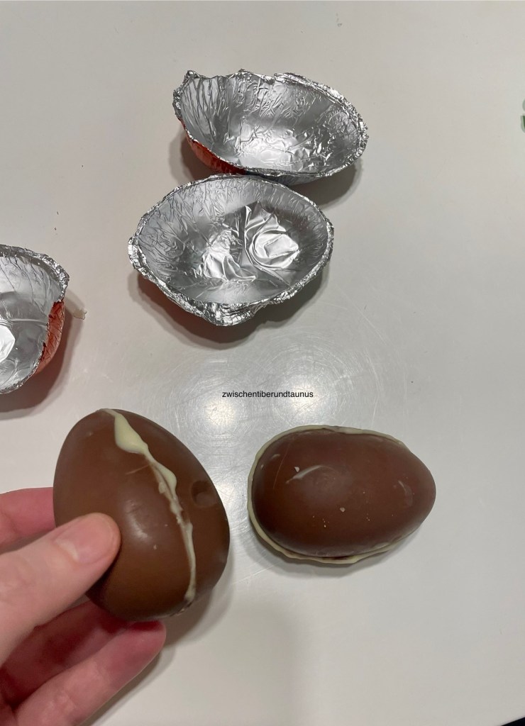 War die Überraschungsei-Aktion ein Flop oder nicht? Ich kann Ihnen die Frage nicht eindeutig beantworten. Heute früh war es hektisch, weil ich zu einem Termin aufbrechen musste, während der Römer Kind und Brotzeit vorbereitete. Zwischendurch bediente sich das Kind an den Ü-Eiern und brachte mir den Zettel, den ich brav vorlas.