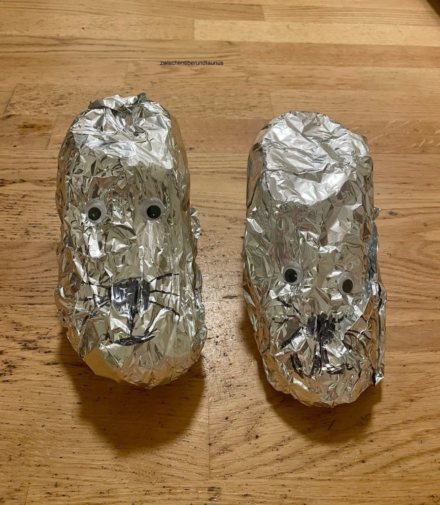 Er fragte den Nachwuchs, wo denn seine Schuhe seien. Der lachte sich scheckig als er die Alu-Hunde sah und riss sie begeistert auf. Als dann noch Schokolade zwischen den Schnürsenkeln steckte, war das Kind so gut gelaunt, dass er fast vergaß, danach zu fragen, ob heute sein bester Freund im Kindergarten wäre.